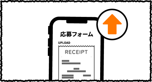 応募期間中に対象商品を購入したレシート(インタ-ネットや通信販売でご購入の場合は領収書等)を撮影し、キャンペーン応募フォームからご応募ください。